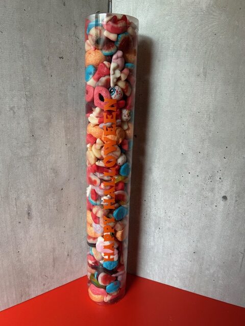 Snoepkoker ‘Halloween’ met tekst op de koker.