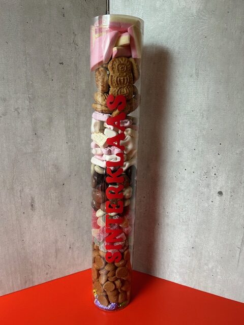 Snoepkoker ‘Sinterklaas’ met tekst op de koker.