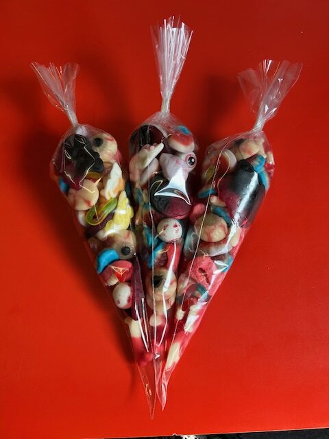 – Gemengd Snoep met verschillende soorten Halloween snoep, skulls, oogballen, schedels, hersenen, muizen, …..